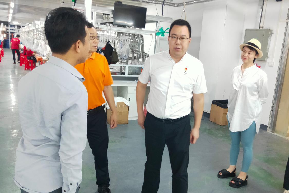 6月10上午,南海區大瀝鎮副鎮長黃亮前往位于鹽步的佛山市洛可西西服飾科技有限公司調研,參觀洛可西西研發室、生產車間、智能倉儲車間。